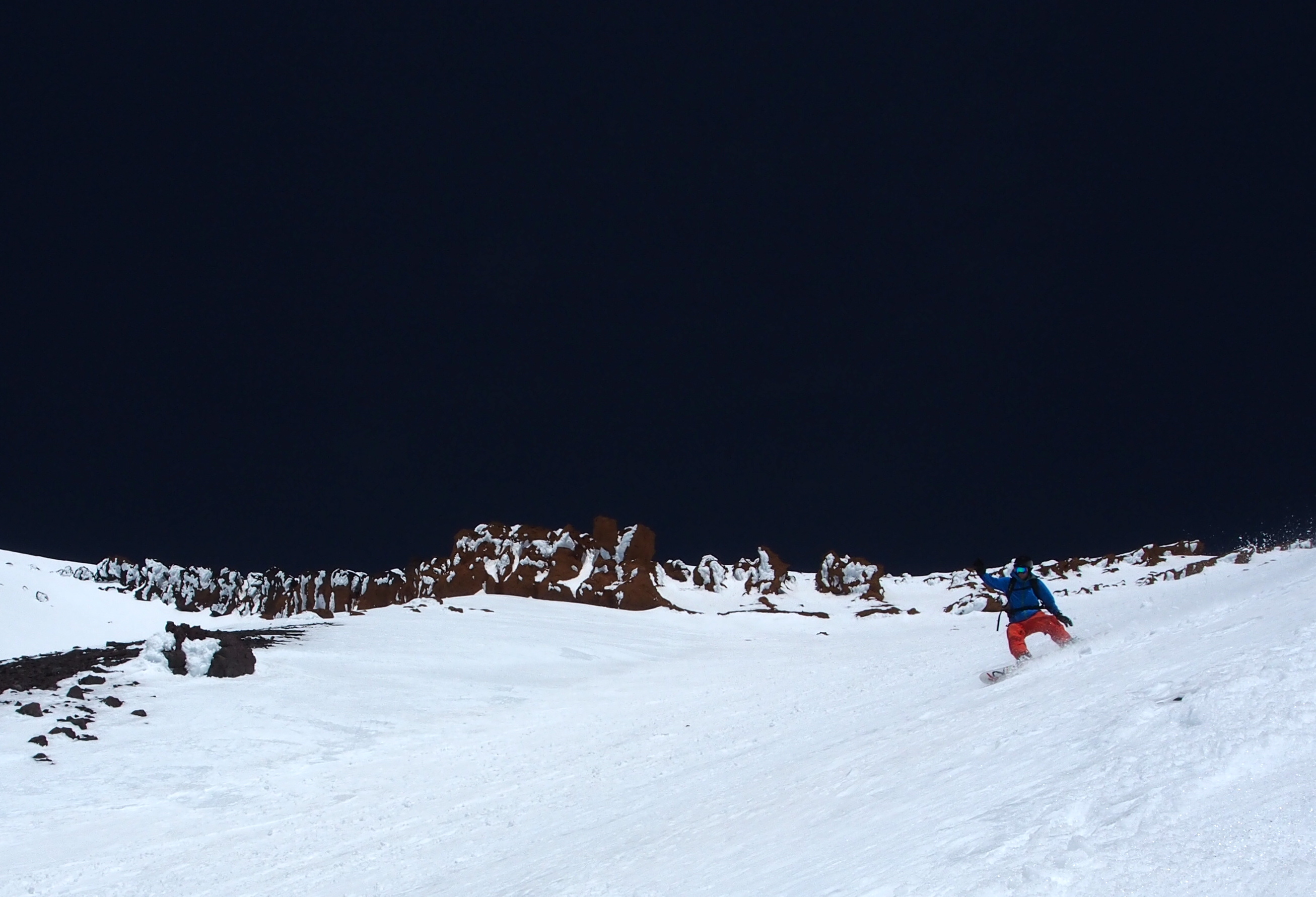 : The weather was just about perfect: no wind with clear night and daytime skies. Prime corn snow for the descent. Doesn’t get better than that. Our timing was pretty good, although we were a bit slower than we thought we’d be… And because we did it midweek, there were only a few other climbers on the mountain. The route, at least while we were on the correct route, was fabulous. Highly recommended.