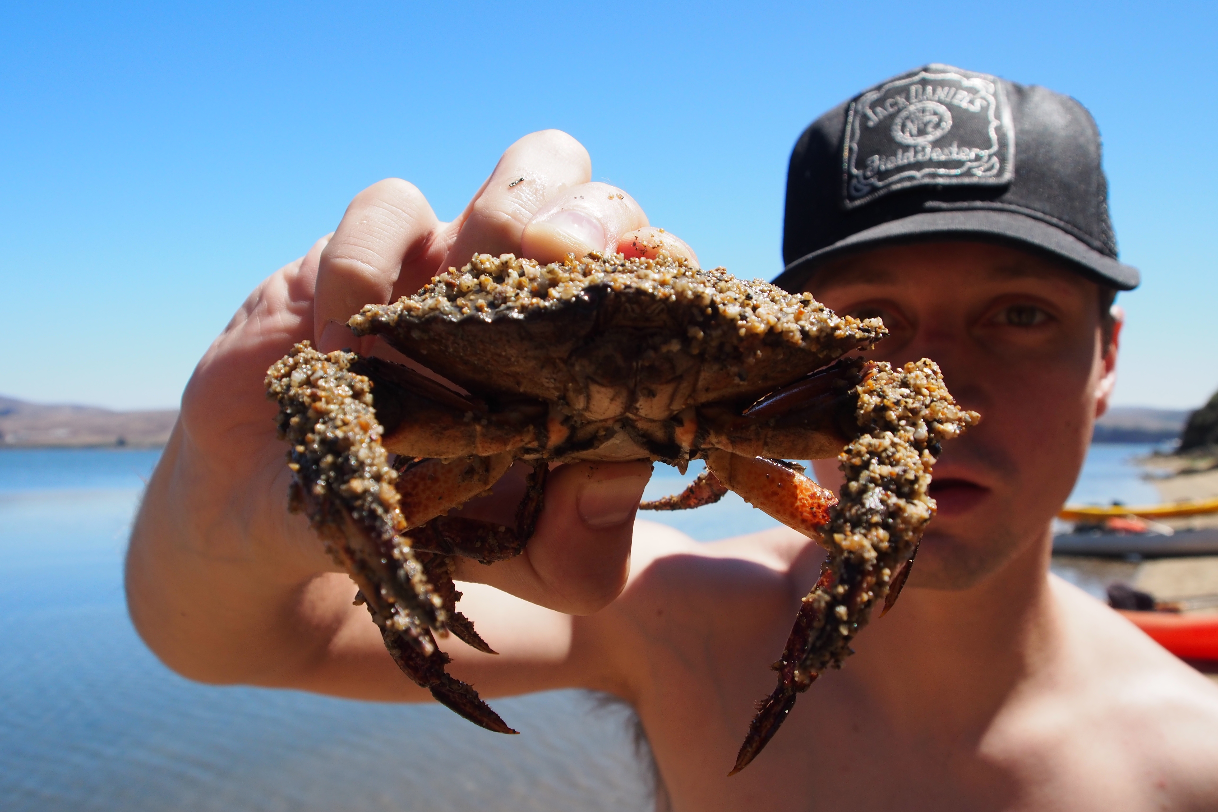 We were in the water and off shore around 11am. The sun was out and the water was sublimely smooth. As usual in California, copious amounts of sunscreen were required. We were hoping to find a more private beach north of the two main camping areas (the ones that have restrooms), so we paddles past both of those. We stopped at a nice beach after about 1.5 hrs for some food and a beverage, and then continued on up the coast.