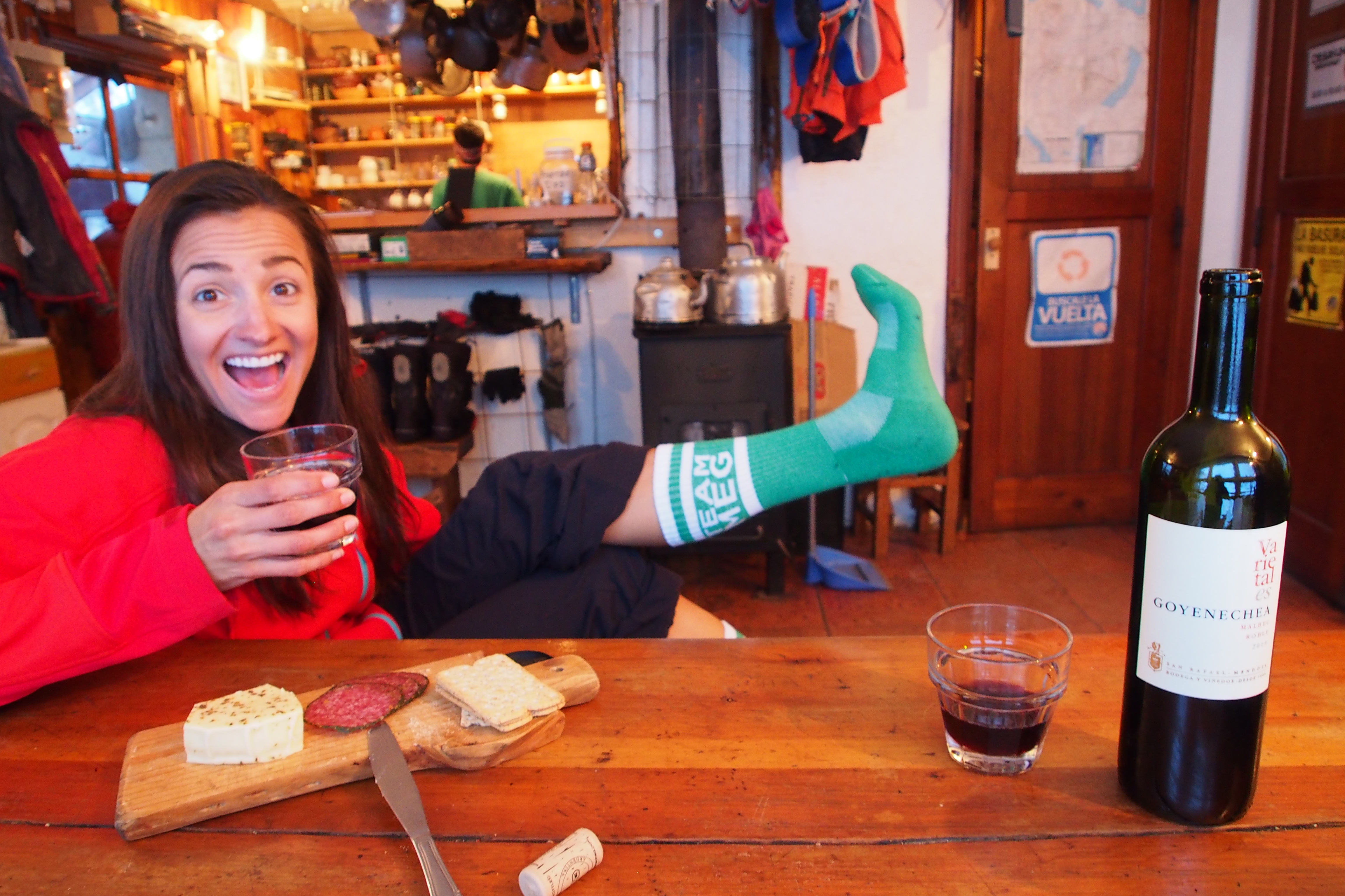 On Monday, we were thrilled to wake up to a few inches of fresh snow! The forecast had called for rain, so we were extra stoked. We ate a quick breakfast provided by the refugio and did a few laps in some fun pow. Again, the upper chutes were too icy for us, but we had a total blast. Alas, we had to get back before dark, so we called it quits around 3pm and hit the trail again. We made it back to Catedral around 5:30pm, and after a much needed shower, we treated ourselves to a fabulous steak dinner at Jauja. Perfection.