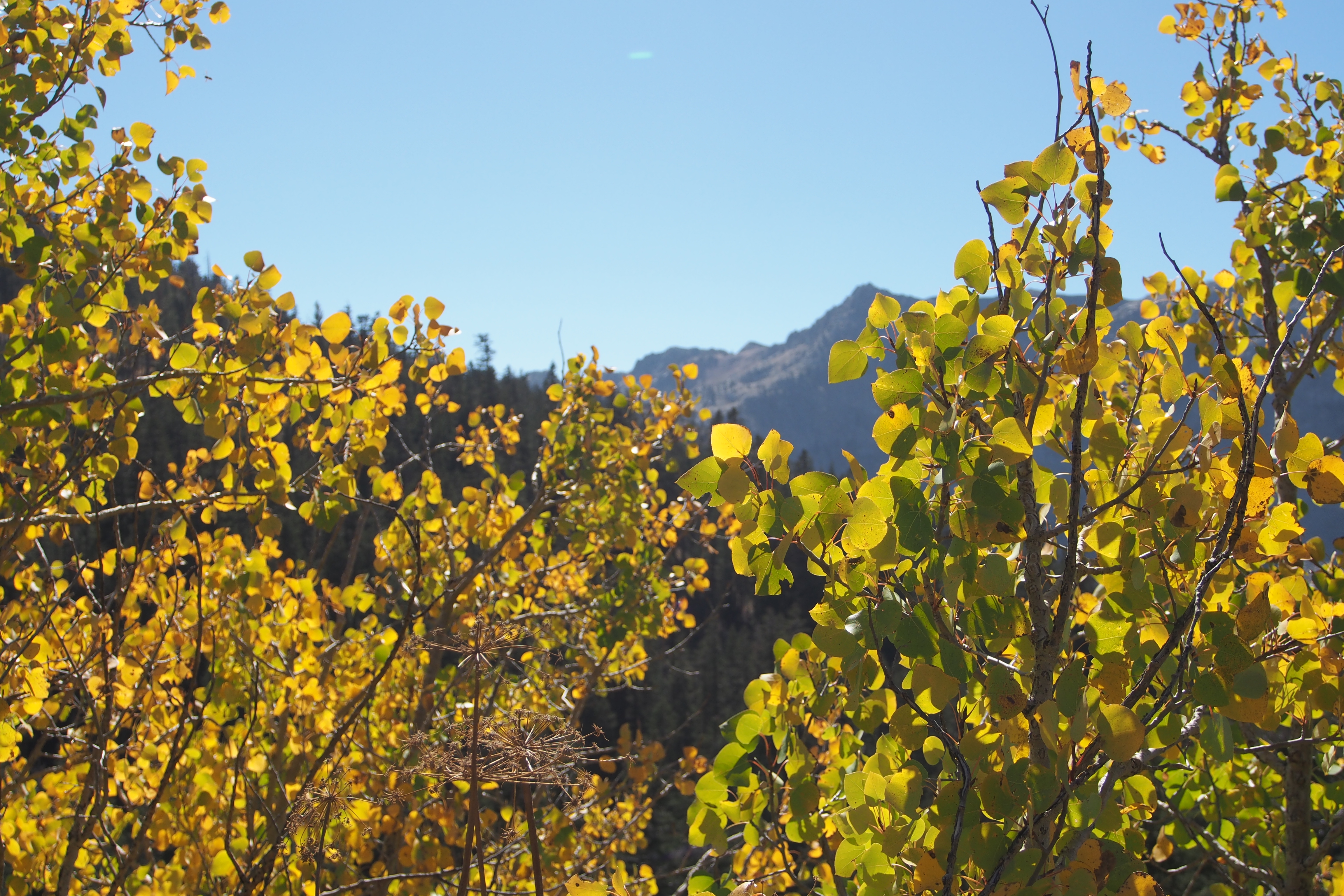 The hike was fabulous and involved a wide variety of terrain. Hilltop crests with sweeping views, valley floors with large pine trees, and beautiful fall colors. There was a push of elevation gain as we approached Fourth of July Lake, but overall the elevation gain/loss was pretty mellow compared to many of the hikes we do, so we were able to go slow and enjoy ourselves.