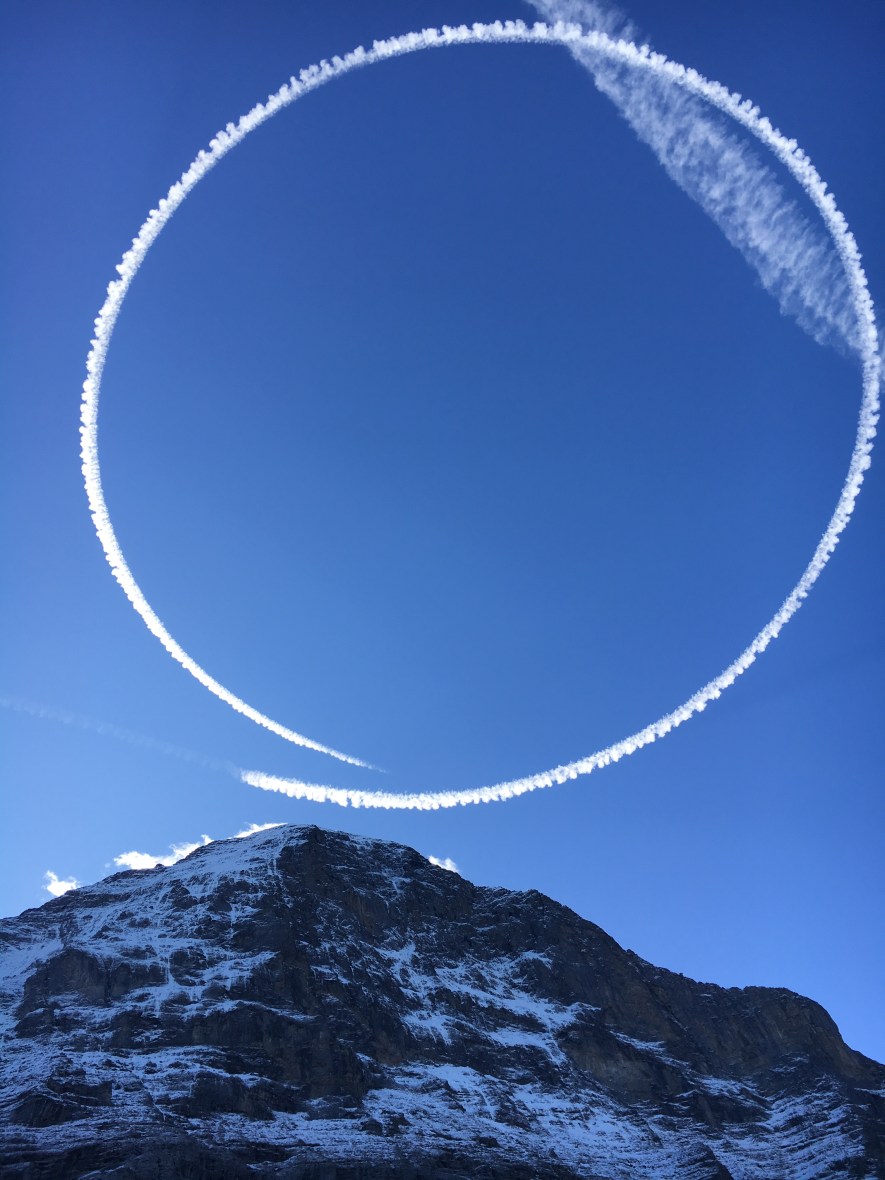 Switzerland Eiger halo January 19, 2018 • 3024 × 4032 • Return to Switzerland While hiking, we saw a plane put a big ‘ol halo right on top of the Eiger #pilotbucketlist